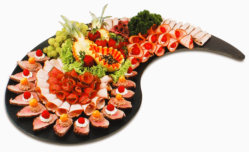 An elegant Cold Buffet “Harmonie” premium meat platter, featuring a refined selection of roasted and cured meats, beautifully garnished with fresh fruit. Designed for corporate events, business receptions, conferences, and private celebrations, this platter works perfectly as a centrepiece or as part of a larger buffet.